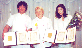 2000年、2001年日本大会にて、審査委員長の服部幸應先生と。